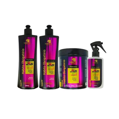 O Kit Hábito Obrigatório é a combinação perfeita de produtos para cuidar dos seus cabelos de maneira completa e eficaz. Com formulações desenvolvidas para hidratar, nutrir e restaurar os fios, este kit proporciona um tratamento profundo, deixando os cabelos mais fortes, brilhosos e livres de frizz. Ideal para todos os tipos de cabelo, o Kit Hábito Obrigatório é indispensável na sua rotina de cuidados diários, garantindo fios saudáveis e com aparência vibrante.